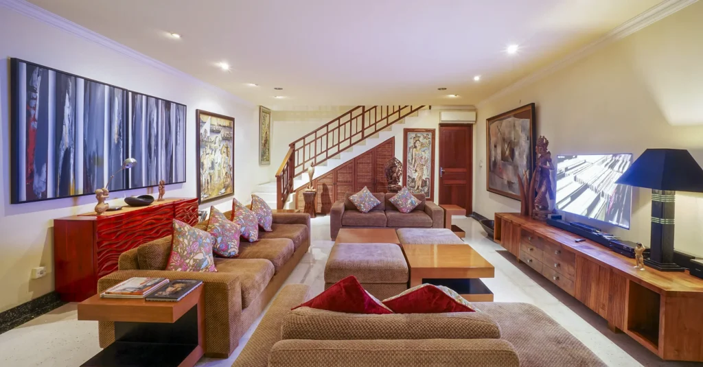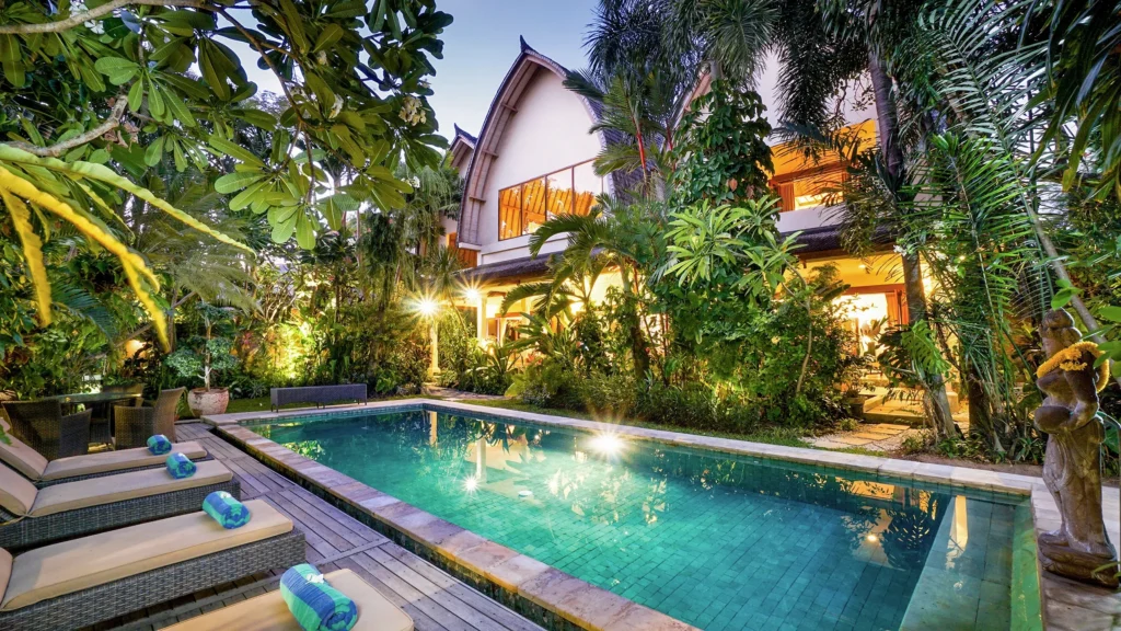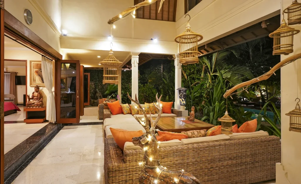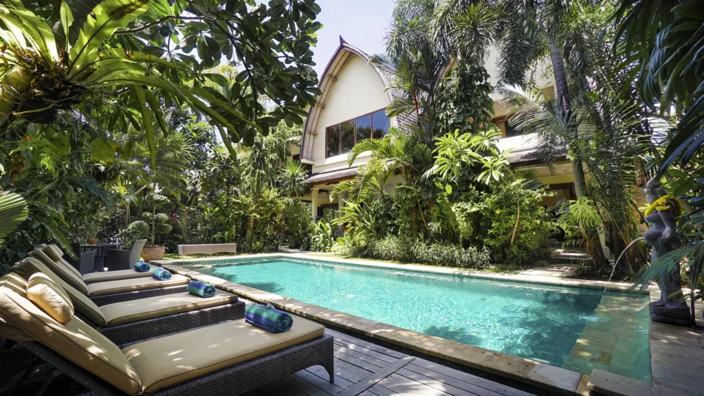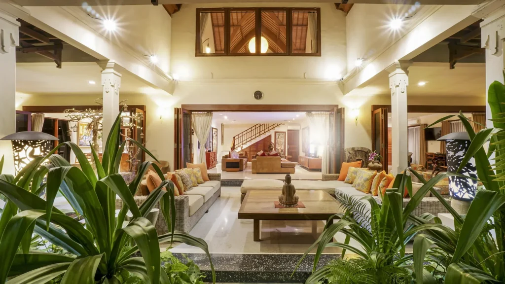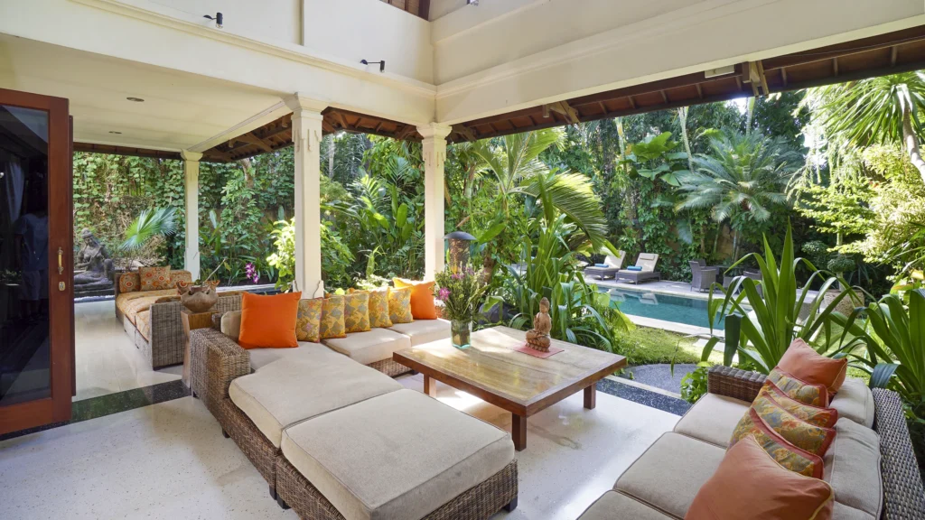 A spacious tropical villa in Petitenget with a lush private garden, generous living areas and an easy walk to Bali’s beach, cafés and restaurants.