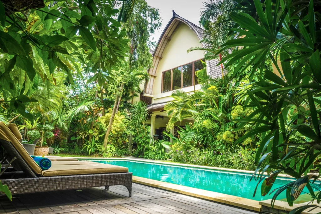 Private 3-bedroom villa in Seminyak with a 12m pool, lush tropical garden, and seamless indoor-outdoor living.