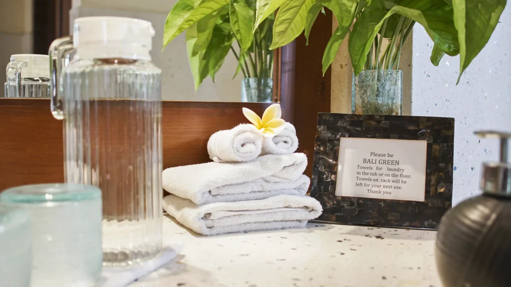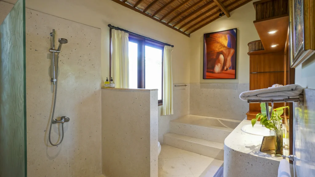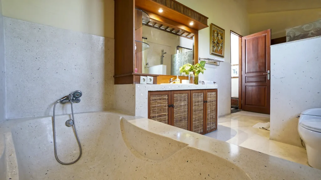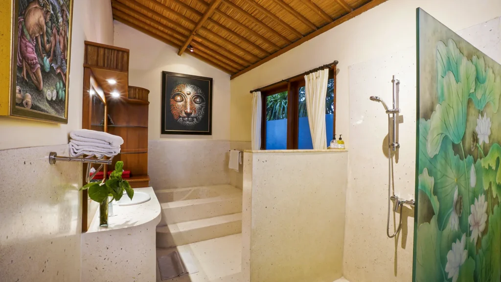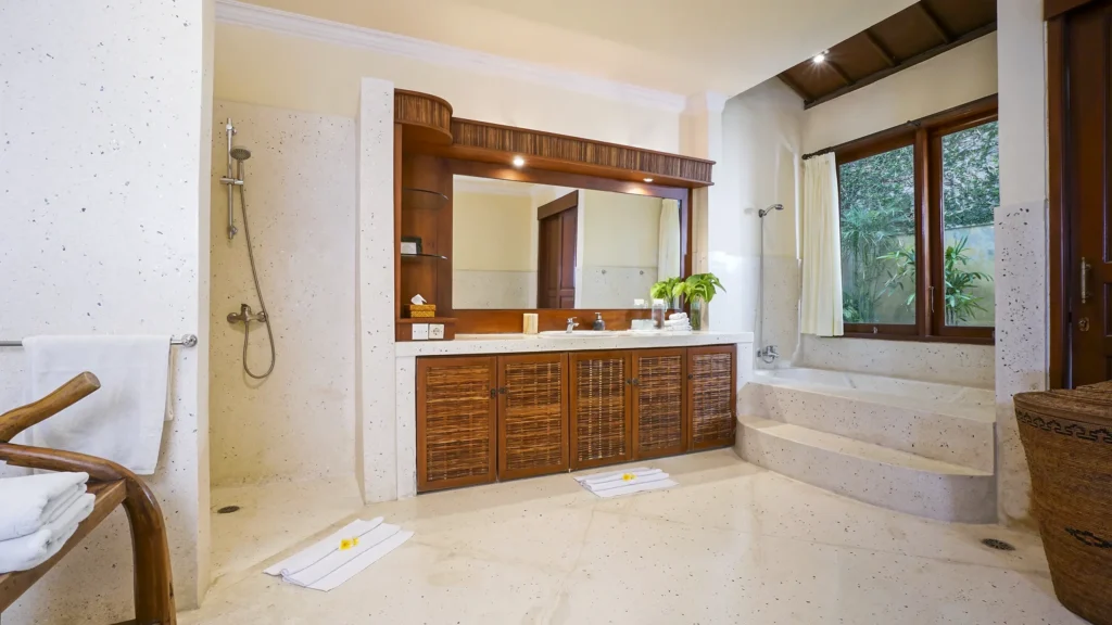 Every ensuite bathroom at Villa Bali Maja has a full-size bathtub – a rare detail at this price point in Seminyak. Walk-in showers, premium linens, and thoughtful finishing complete the picture. A separate guest toilet is available on the ground floor for day use.