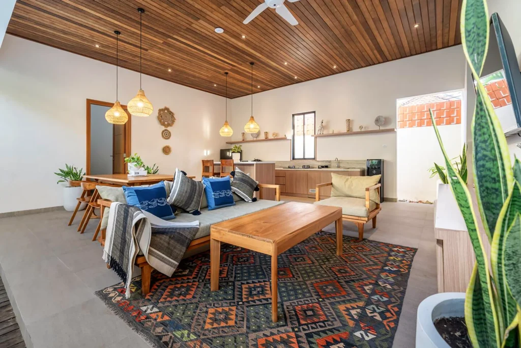 Umalas has been a favourite among Bali’s long-term expat community for years — and for good reason. Rice field views, independent cafés, reliable restaurants, and a pace that makes extended stays genuinely comfortable. Jl. Bumbak connects directly to Canggu without the traffic of the main roads.